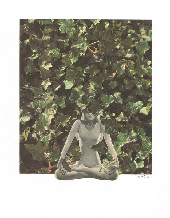This series titled "Good Housekeeping" is my artistic response to the time spent at home during the Covid-19 pandemic. Using only found imagery, each collage weaves common house plants with a single female figure, exploring themes of Domesticity and Eco-Feminism. House plants have long been a part of my surroundings, beginning with my maternal grandmother, whose plants I still cherish in my home today. Throughout the, I dedicated much time to tending my indoor garden, reflecting on the role of our home environment and the ways we personalize our spaces. The plants in these collages offer comfort, companionship, and protection as I reclaim vintage photographs taken by men decades ago.